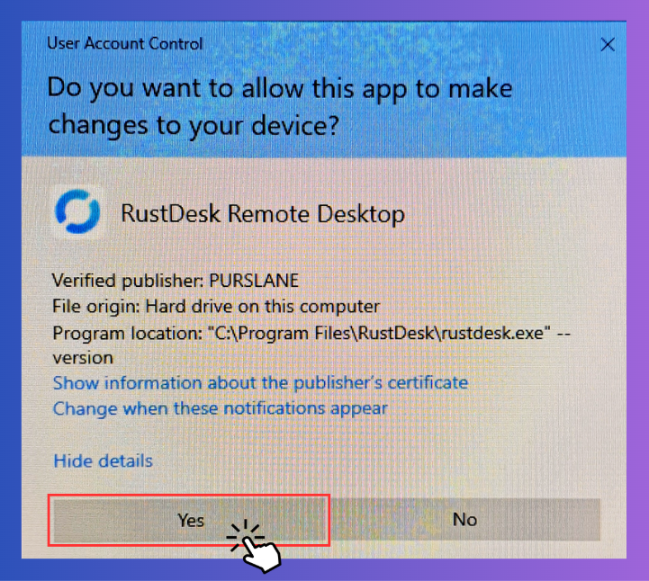 ผู้ใช้งานดาวน์โหลดและติดตั้งโปรแกรม Rustdesk เป็นโปรแกรมที่ทางทีมงานจะใช้เพื่อแก้ปัญหาให้ผู้ใช้งาน