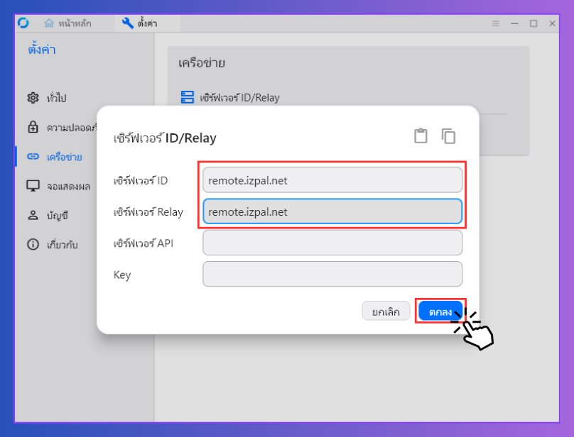 ตั้งค่า เซิร์ฟเวอร์ ID และ เซิร์ฟเวอร์ Reply เป็น remote.izpal.net