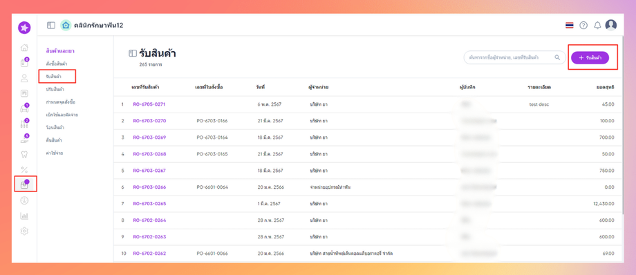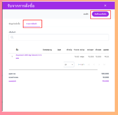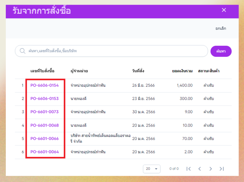 ระบบจะแสดงรายการสั่งซื้อที่สถานะเป็น ค้างรับ