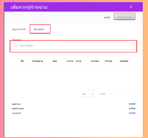 ผู้ใช้งานสามารถเลือกสินค้าเพิ่มเติมได้ เมื่อเลือกเสร็จแล้วกดปุ่มบันทึกระบบจะทำการบันทึกข้อมูลการรับสินค้า