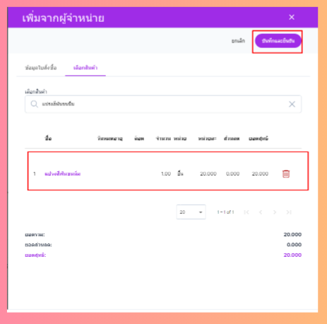 เมื่อผู้ใช้ระบุเรียบร้อยแล้วกดตกลง ระบบจะทำการบันทึกรายการสินค้า