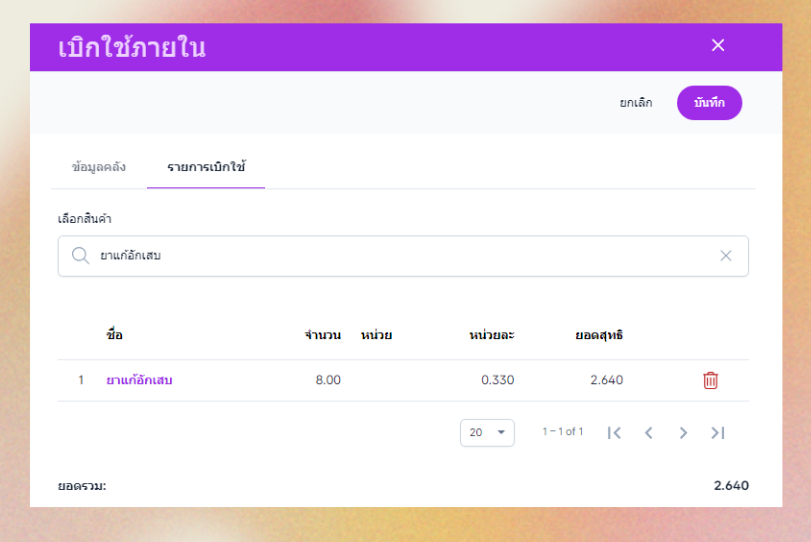 ระบบจะทำการบันทึกข้อมูลการเบิกใช้ภายใน