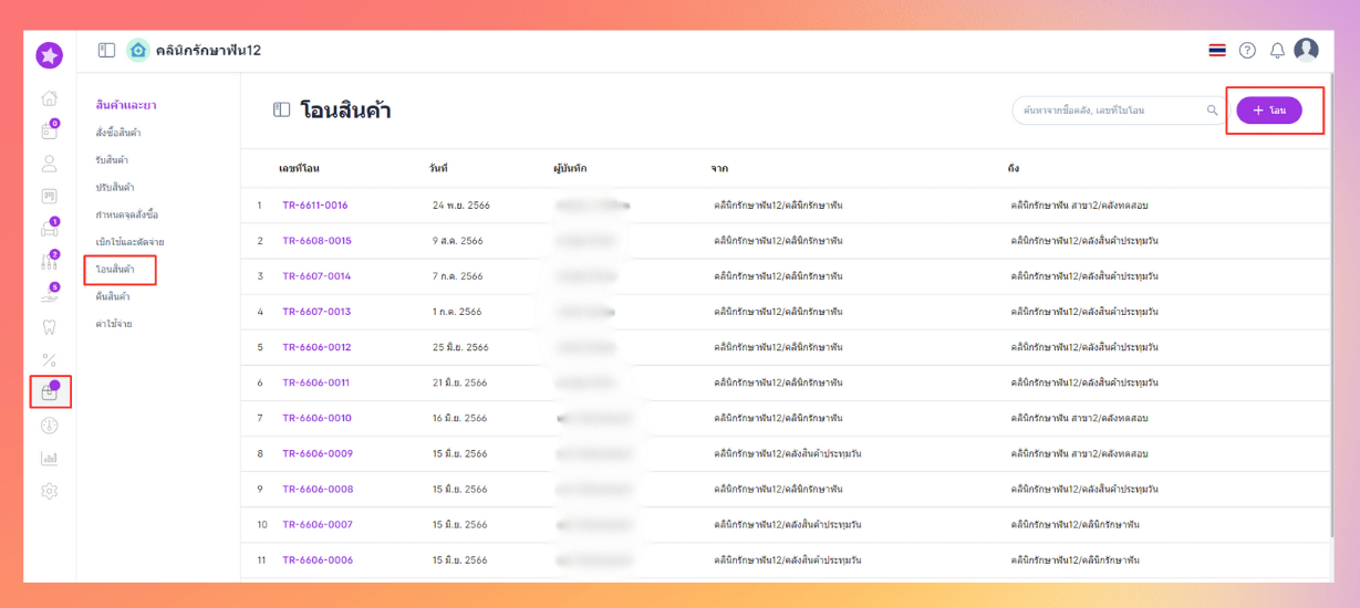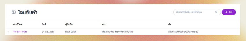การโอนสินค้า คือ ระบบการโอนสินค้าจากคลังนึงไปยังอีกคลัง ผู้ใช้งานสามารถดูขั้นตอนได้ในคู่มือนี้