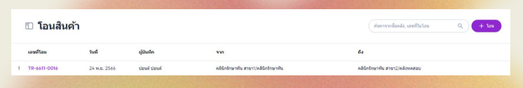 ผู้ใช้งานเลือกสินค้าระบบจะแสดงรายการสินค้าที่ผู้ใช้งานเลือกจากนั้นระบุจำนวนที่ต้องการโอนและกดตกลง