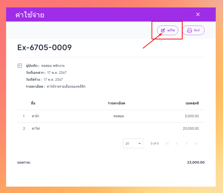 ระบุรายละเอียดค่าใช้จ่าย และระบุยอดสุทธิ กดตกลง