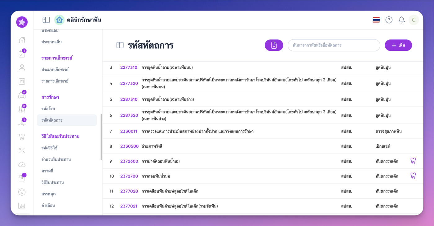 ทั้งนี้ทางระบบ Dentapop ได้เตรียมข้อมูลรหัสหัตถการ ที่ทาง สปสช กำหนดให้ สำหรับคลินิกที่ยังไม่ได้มีการกำหนดไว้ โดยสามารถกดปุ่ม download และตรวจสอบเพื่อการ อัพเดรด ข้อมูลที่มีอยู่ได้ทันที