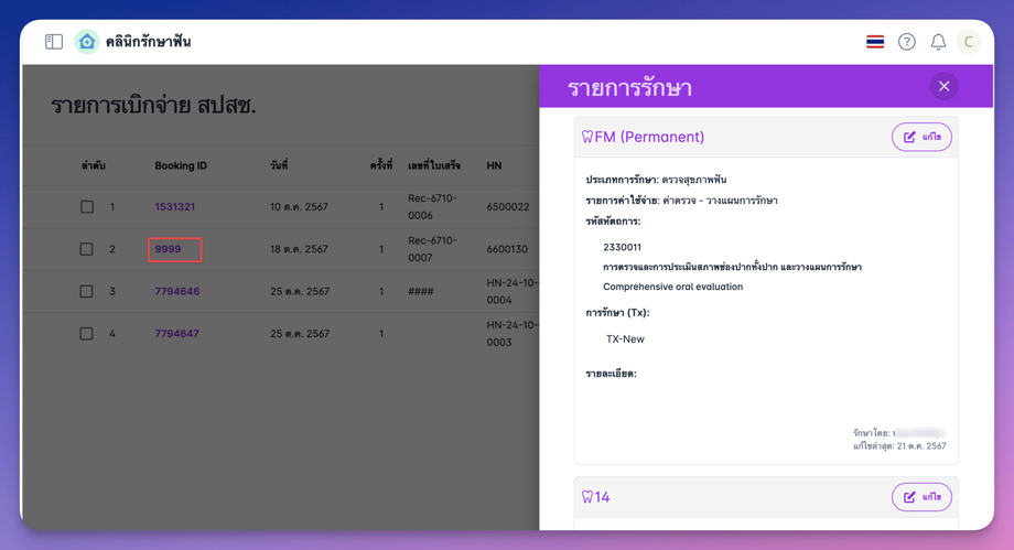 โดยสามารถแก้ไขรายการรักษา และรหัสการรักษา เพื่อการบันทึกข้อมูลให้ตรงตามเงือนไข ในส่งข้อมูลให้ทาง สปสช ได้