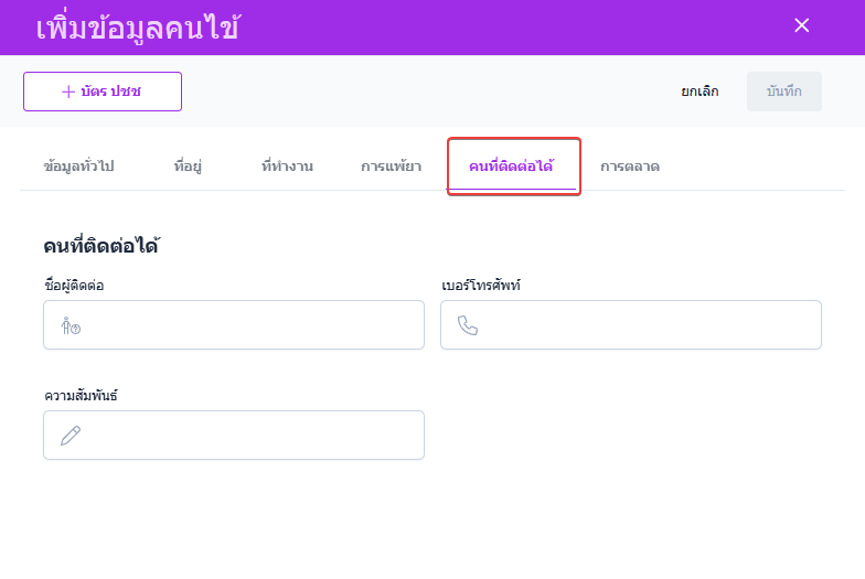 ผู้ใช้งานกรอกข้อมูลคนที่ติดต่อ กรณีหากเกิดปัญหาสามารถติดต่อคนใกล้ตัวคนไข้ได้