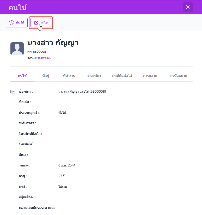 แก้ไขข้อมูลคนไข้