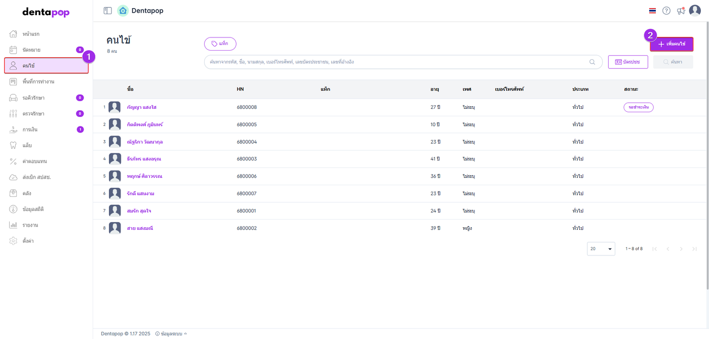 โดยมีขั้นตอนการเพิ่มคนไข้ดังนี้