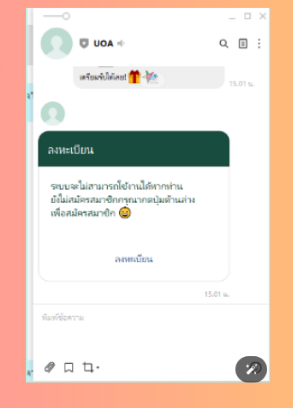 ให้พิมพ์ข้อความว่า “ #เมนู “ หากต้องการลงทะเบียน