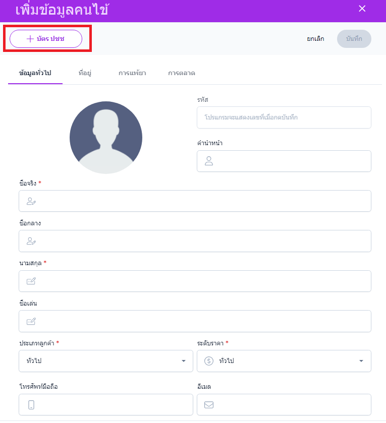 ประเภทลูกค้า : ประเภทคนไข้ที่ทางผู้ใช้งานทำการตั้งค่า เพื่อเก็บข้อมูลทางการตลาด