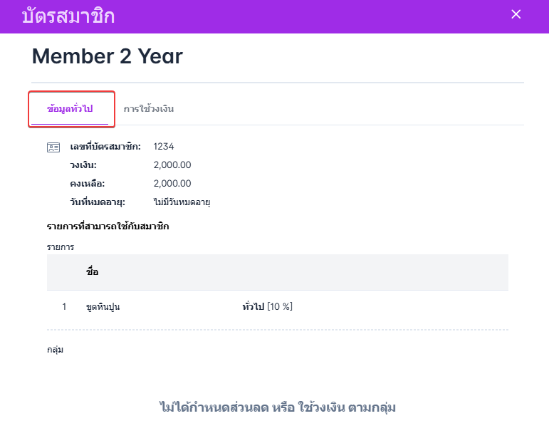 ข้อมูลทั่วไปของบัตรสมาชิก