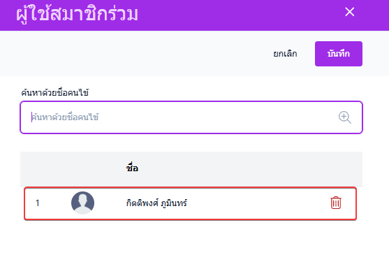 สามารถเพิ่มผู้ใช้สมาชิกร่วมได้ โดยกดที่ไอคอนรูปคน+ ด้ายซ้าย ถัดจากจำนวนวันหมดอายุ โดยการค้นหาที่ชื่อคนไข้ที่ต้องการเป็นสมาชิกร่วม และกดบันทึก