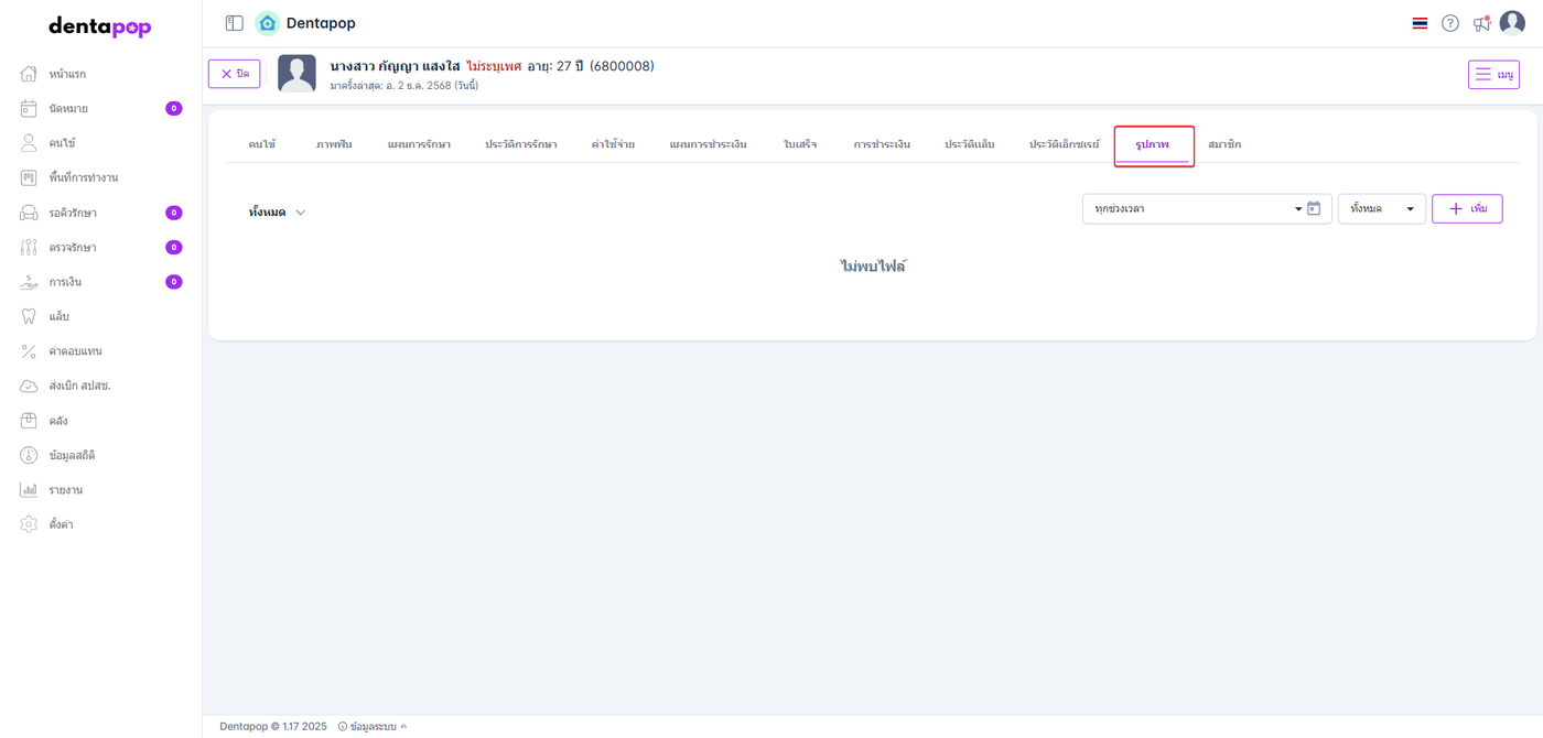 แสดงรูปภาพที่เคยเพิ่มให้คนไข้ และสามารถเพิ่มรูปภาพเพิ่มเติมได้