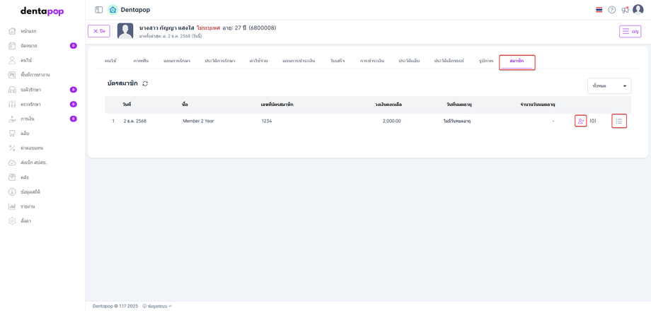 หากคนไข้ได้ทำการสมัครสมาชิก จะมีข้อมูลบัตรสมาชิกแสดงในแถบสมาชิก โดยบัตรสมาชิกมีรายละเอียด ดังนี้