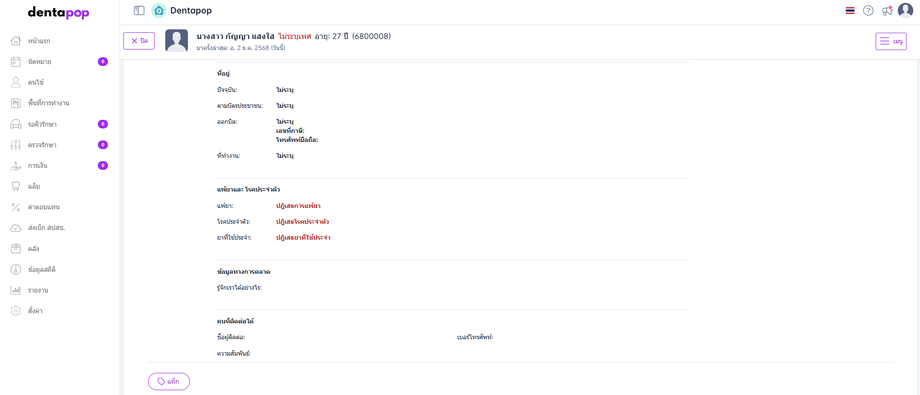 สามารถคลิกเพื่อดูข้อมูลคนไข้เพิ่มเติมหรือแก้ไข ได้ที่ปุ่มข้อมูลคนไข้ด้านขวา