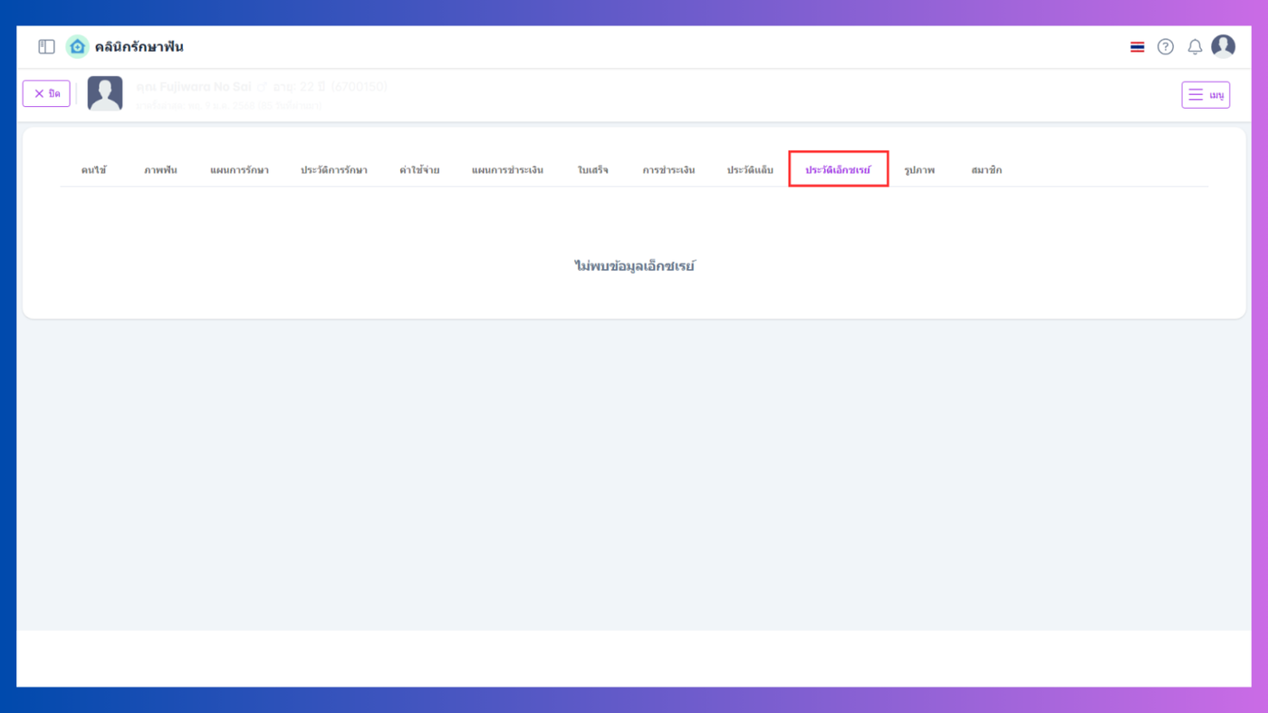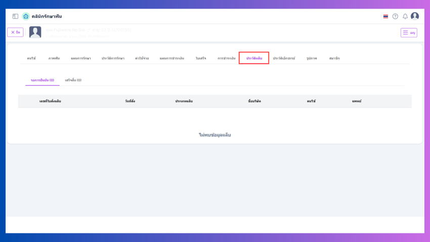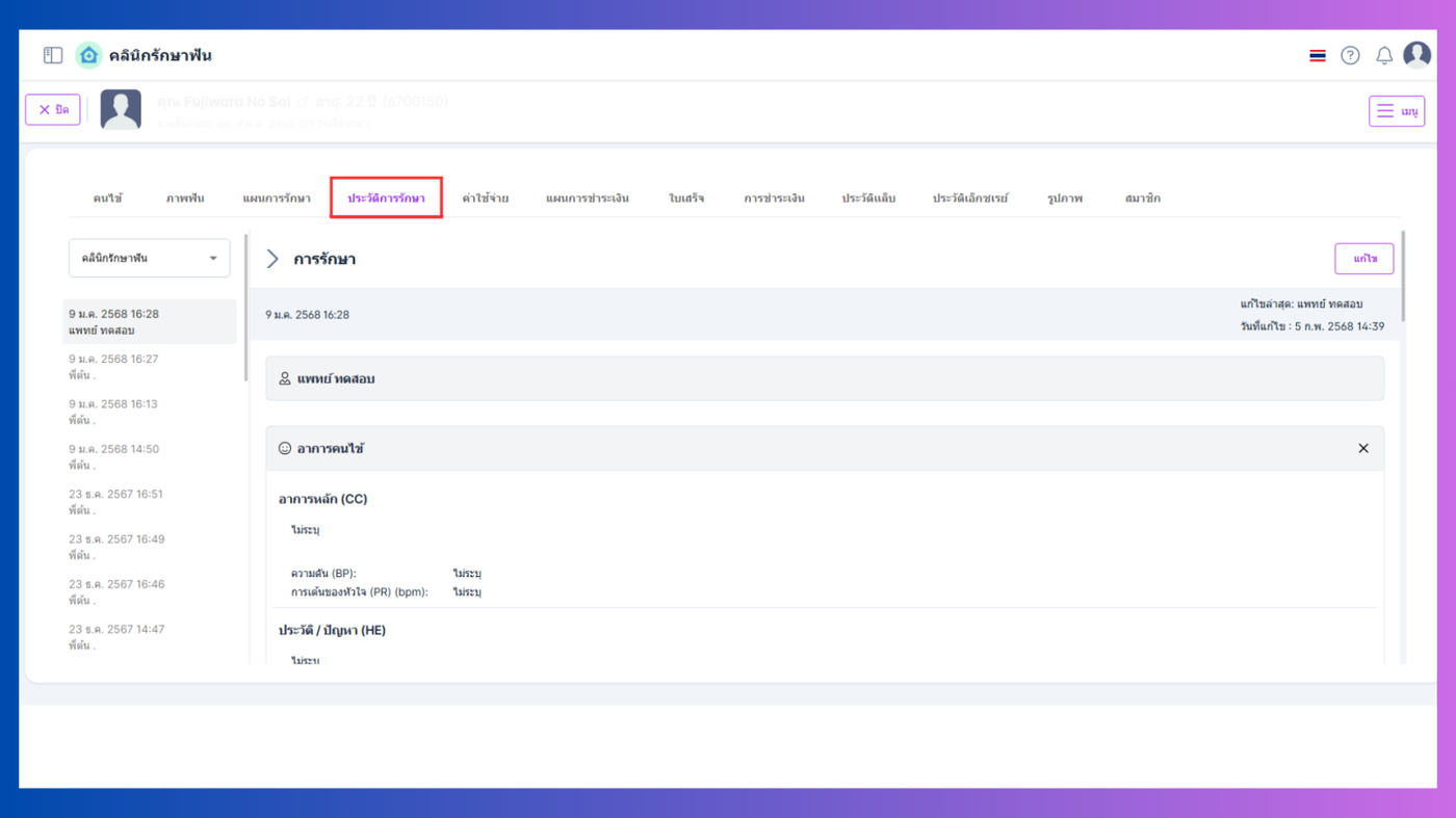 ระบบจะเข้าสู่หน้าประวัติคนไข้