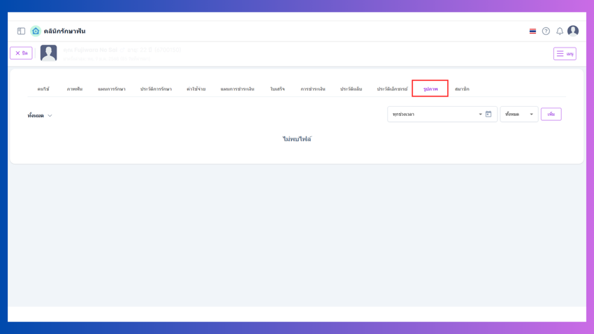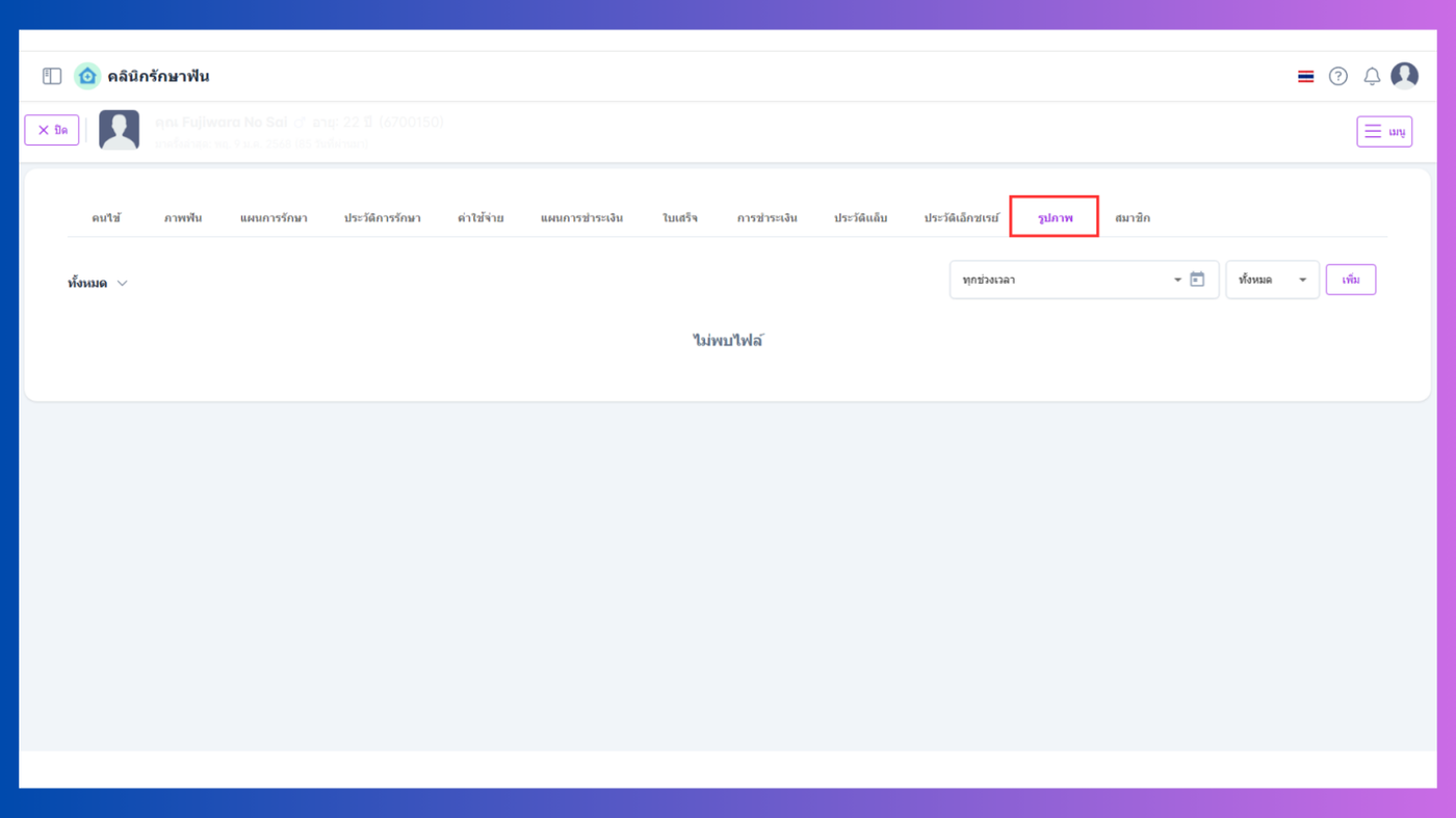 แสดงรูปภาพที่เคยเพิ่มให้คนไข้ และสามารถเพิ่มได้