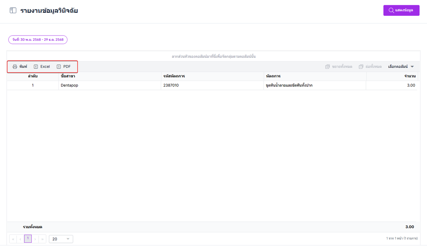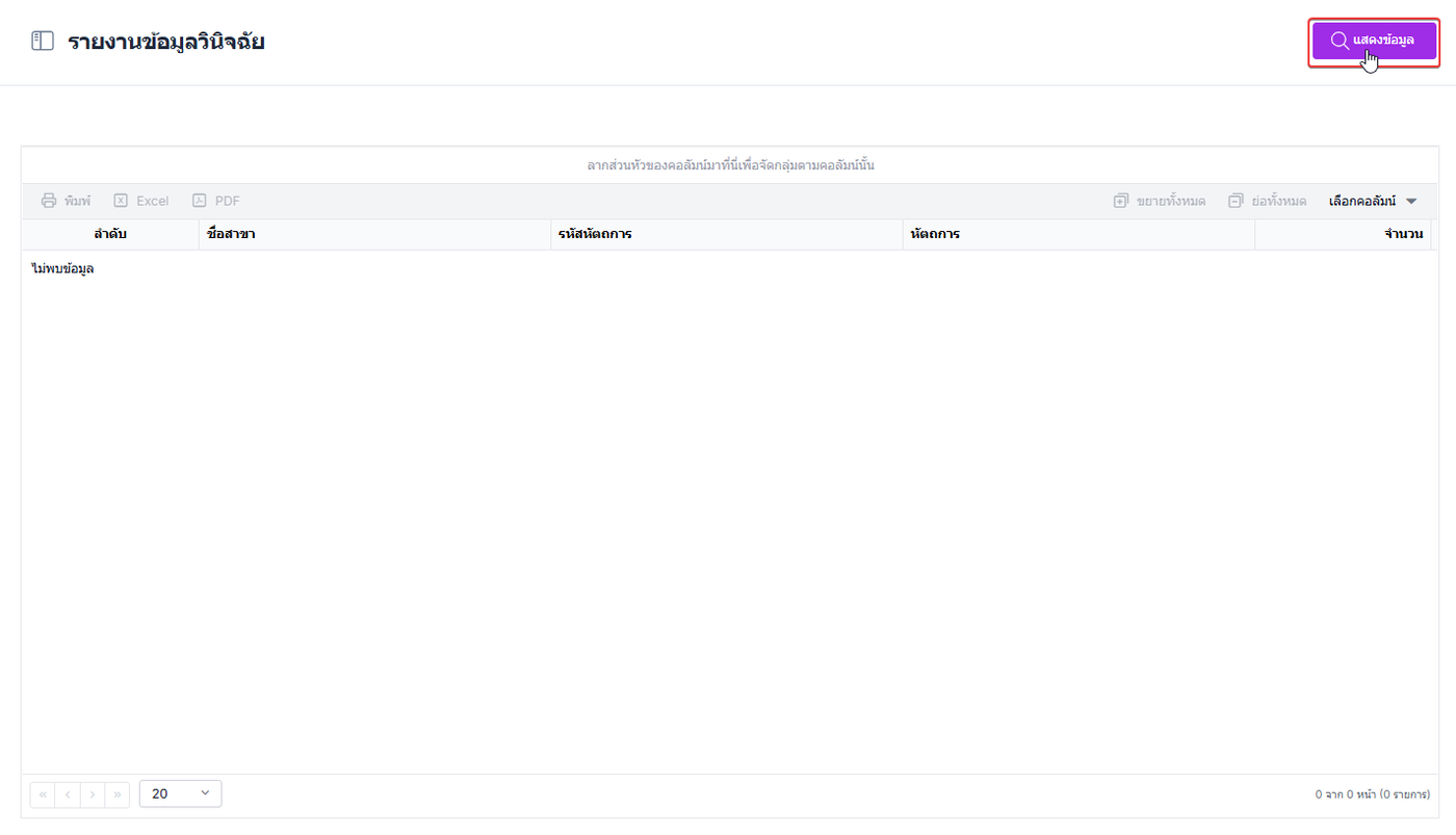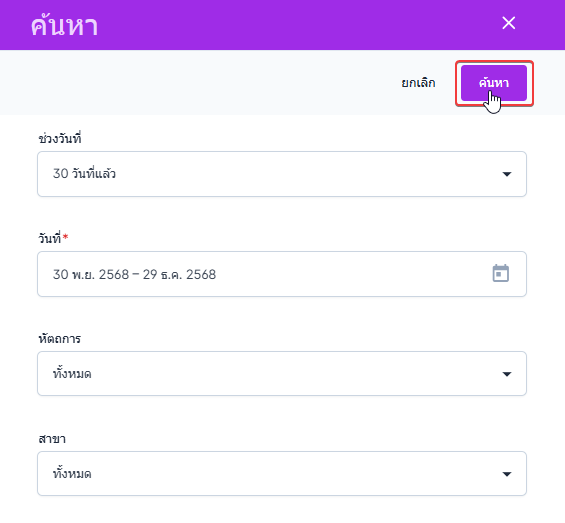 เมื่อกำหนดเงื่อนไขครบถ้วนแล้ว ผู้ใช้งานสามารถดำเนินการค้นหาเพื่อแสดงผลรายงานตามเงื่อนไขที่เลือก