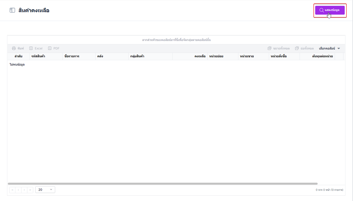 ผู้ใช้งานเลือกหัวข้อ สินค้าคงเหลือ