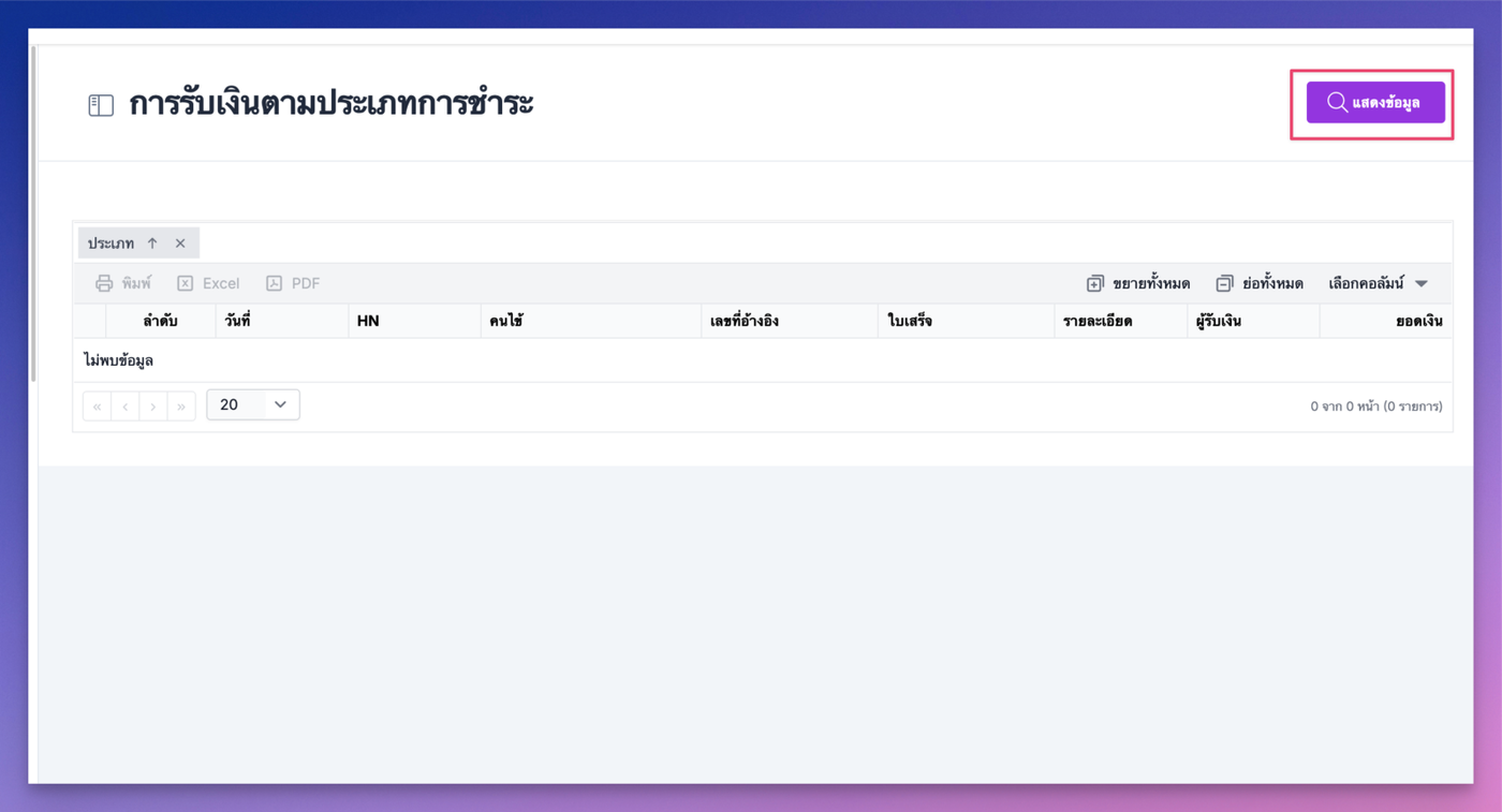2.เลือกหัวข้อรายได้ > การรับเงินตามประเภทการชำระ
