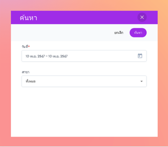 คลิกที่แสดงข้อมูล จากนั้นจะมีหน้าต่างค้นหาขึ้นมาผู้ใช้สามารถระบุวันที่ สาขา เพื่อดูรายละเอียด