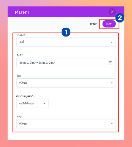 - สามารถเลือกค้นหาจากคนไข้ทั้งหมดหรือเลือกระบุคนได้