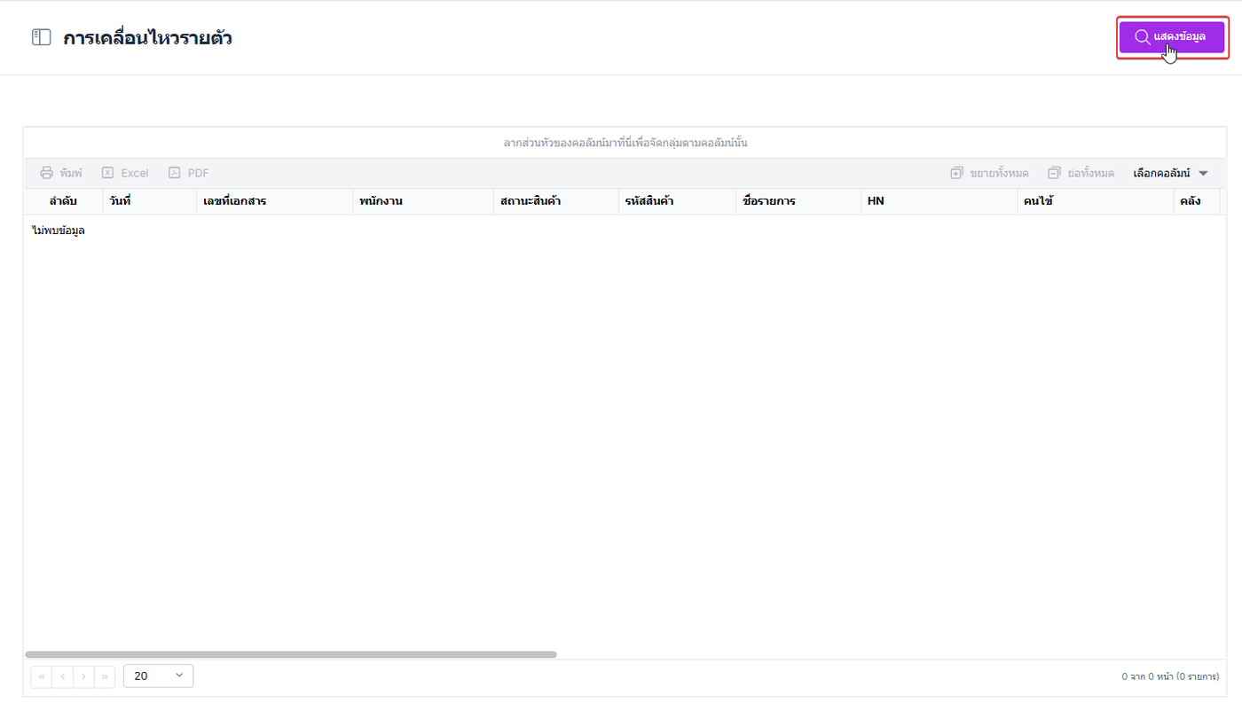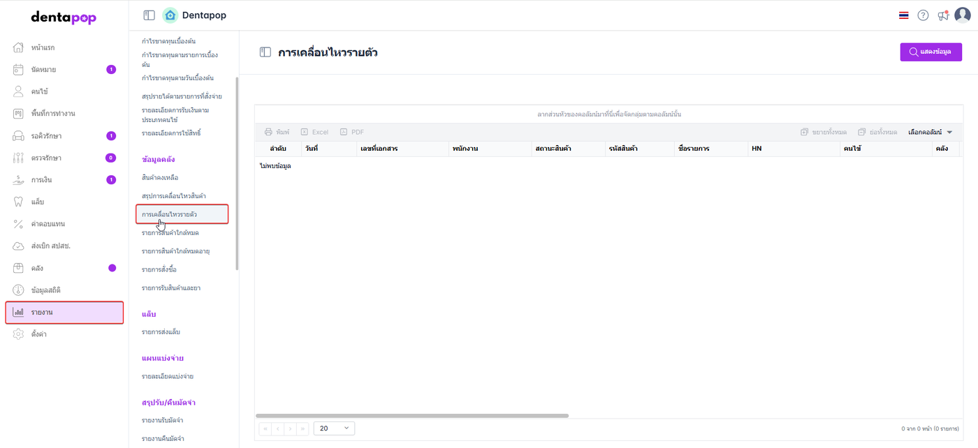 ผู้ใช้งานเลือกหัวข้อ การเคลื่อนไหวรายตัว