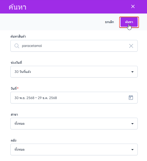 เมื่อกำหนดเงื่อนไขครบถ้วนแล้ว ผู้ใช้งานสามารถดำเนินการค้นหาเพื่อแสดงผลรายงานตามเงื่อนไขที่เลือก