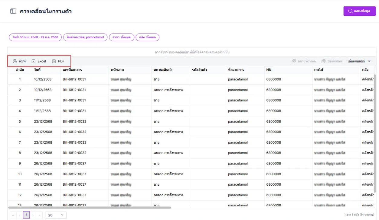 รายการนี้ช่วยให้ผู้ใช้งานทราบถึงรายละเอียดของการเคลื่อนไหวของสินค้าและยาแต่ละรายการในช่วงเวลาที่เลือก การนำข้อมูลนี้ไปใช้สามารถช่วยในการวิเคราะห์และการบริหารจัดการ