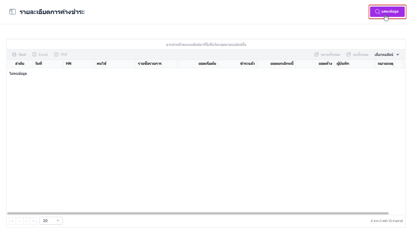 ผู้ใช้งานสามารถลากส่วนหัวของคอลัมน์เพื่อจัดตามกลุ่มของคอลัมน์ได้