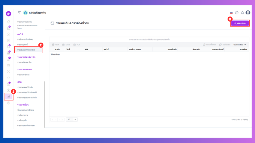 - ไปที่เมนูรายงาน