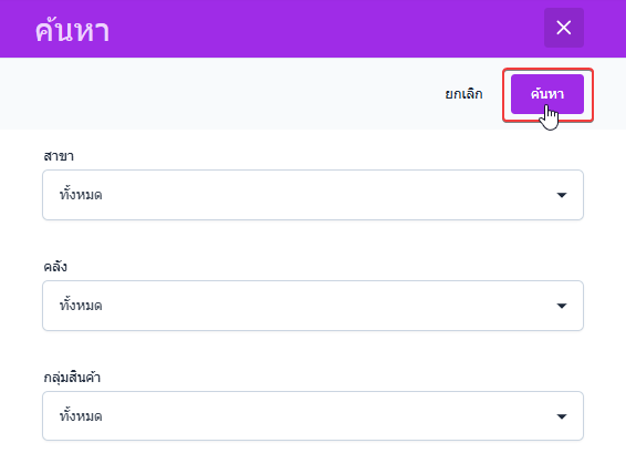 เมื่อกำหนดเงื่อนไขครบถ้วนแล้ว ผู้ใช้งานสามารถดำเนินการค้นหาเพื่อแสดงผลรายงานตามเงื่อนไขที่เลือก