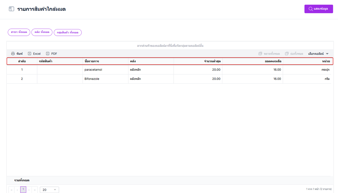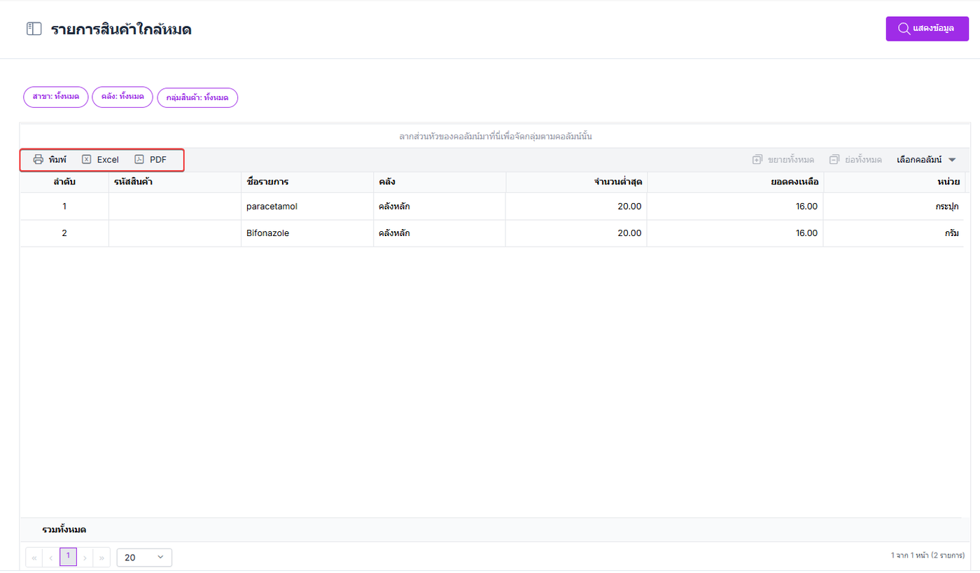 รายการสินค้าใกล้หมด