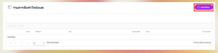 ผู้ใช้จะเข้าสู่หน้ารายการสินค้าใกล้หมด
