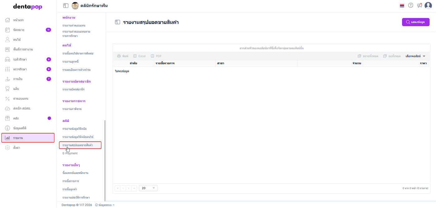 ผู้ใช้งานไปที่เมนู รายงาน