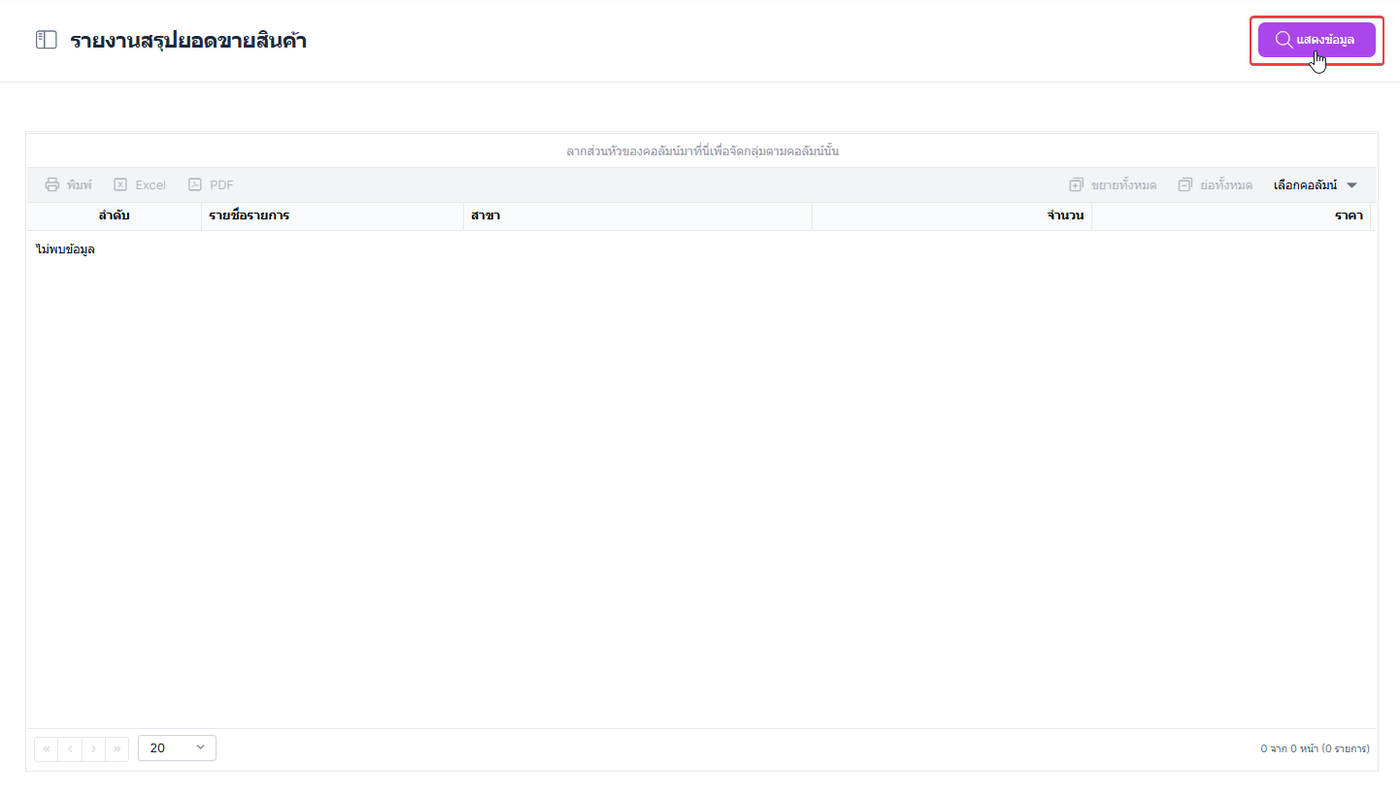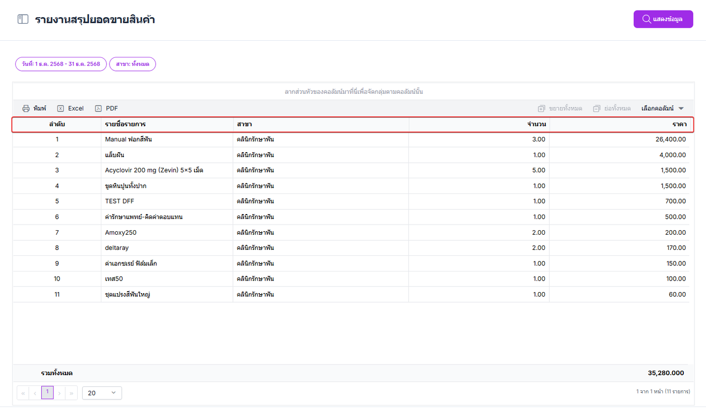 ผู้ใช้งานสามารถลากส่วนหัวของคอลัมน์เพื่อจัดตามกลุ่มของคอลัมน์ได้