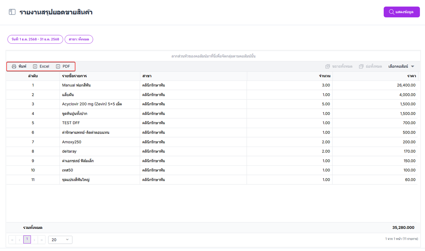 รายงานสรุปยอดขายสินค้า