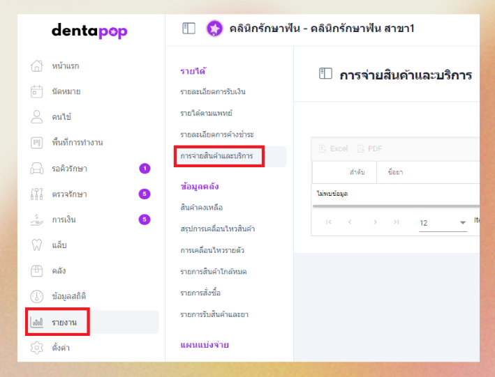 รายได้ตามรายการที่สั่งจ่ายนำเสนอข้อมูลเกี่ยวกับรายได้ที่ได้จากรายการบริการหรือสินค้าที่ลูกค้าจ่ายเงิน ให้ภาพรวมและการวิเคราะห์รายได้ในแต่ละประเภท พร้อมทั้งสรุปรายการรับเงินที่สั่งตามรายการ
