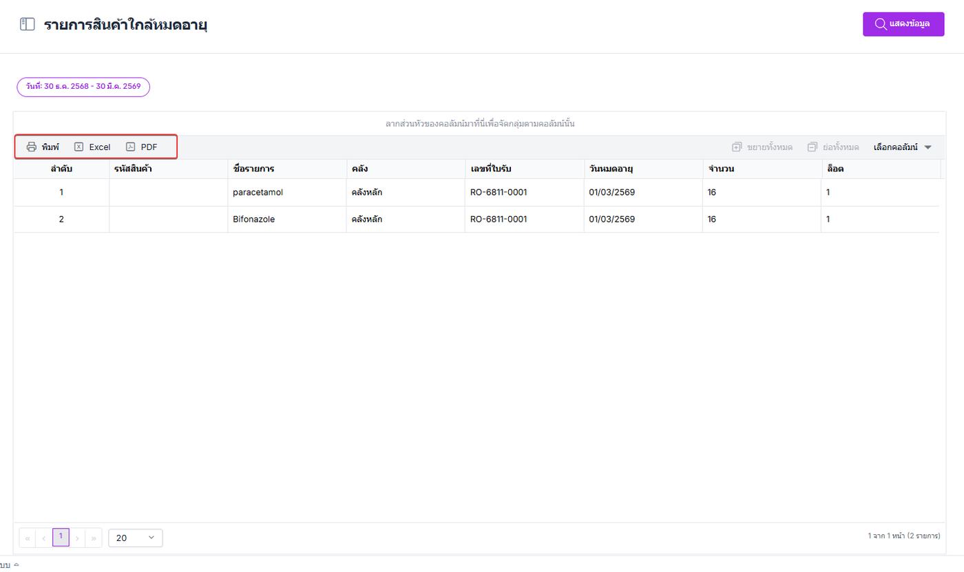 วิธีดูข้อมุลรายการสินค้าใกล้หมดอายุมีขั้นตอน ดังนี้