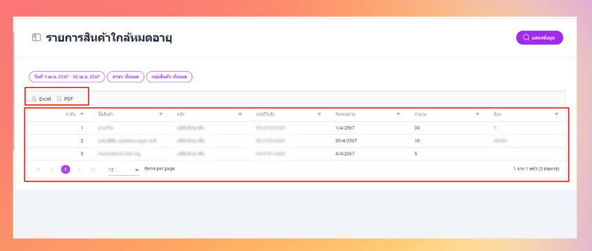 วิธีดูข้อมุลรายการสินค้าใกล้หมดอายุ