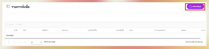 รายการจะแสดงข้อมูลการสั่งซื้อ โดยค้นหาได้จากผู้จำหน่าย หรือ การสั่งซื้อสินค้าและวัสดุ