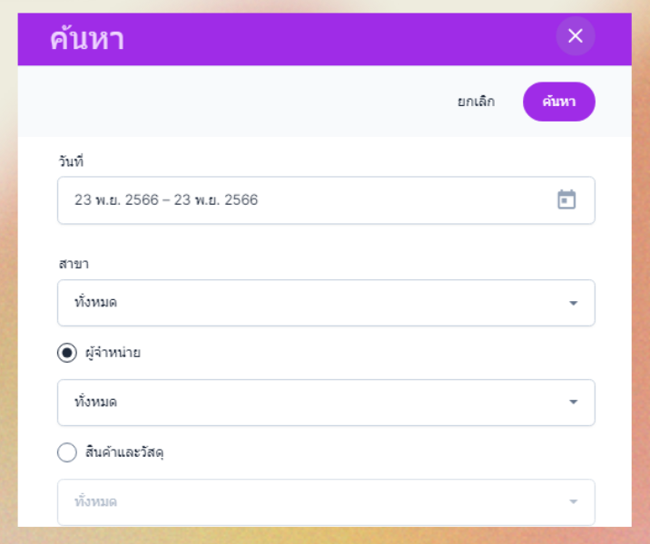 ระบบจะแสดงข้อมูลตามที่ผู้ใช้งานค้นหา