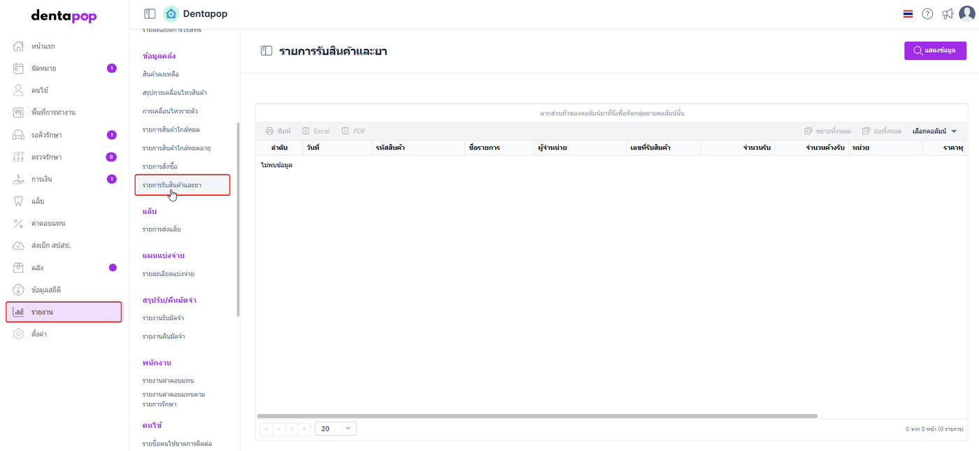 ผู้ใช้งานไปที่เมนูรายงาน