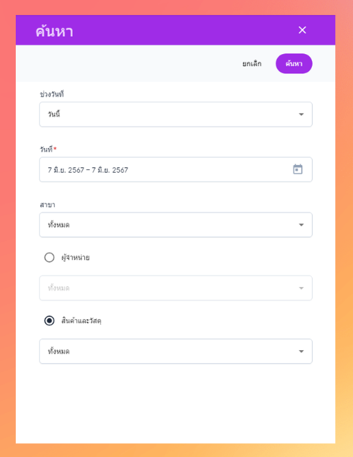ระบบจะแสดงข้อมูลตามที่ผู้ใช้งานค้นหา