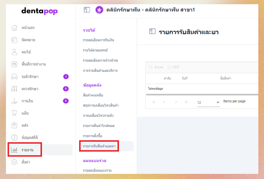 1.ไปที่เมนูรายงาน