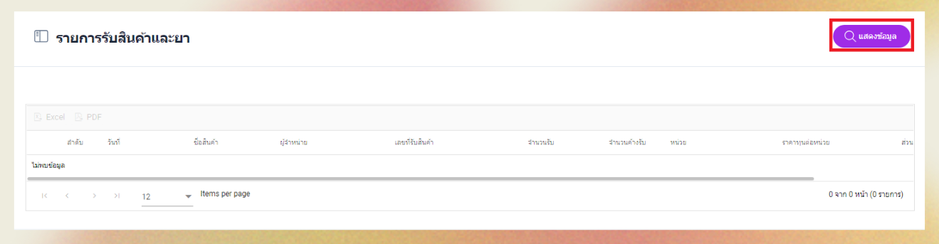 รายงานแสดงข้อมูลการรับสินค้า และ ยา