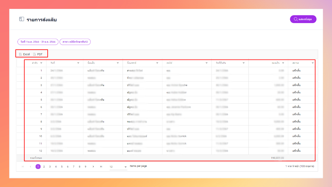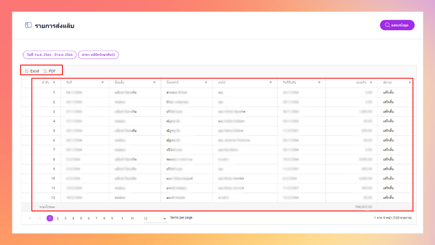 - ระบบจะแสดงข้อมูลตามที่ผู้ใช้งานค้นหา และผู้ใช้งานสามารถ Download รายงานเป็นไฟล์ Excel หรือ PDF ได้