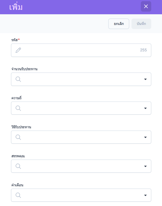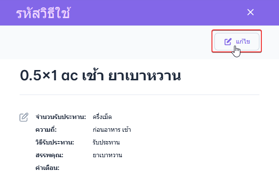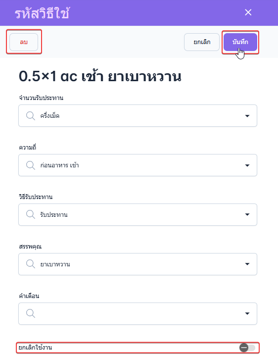 วิธีรับประทาน จะแสดงจากรายการที่ผู้ใช้งานตั้งค่าใน วิธีรับประทาน
